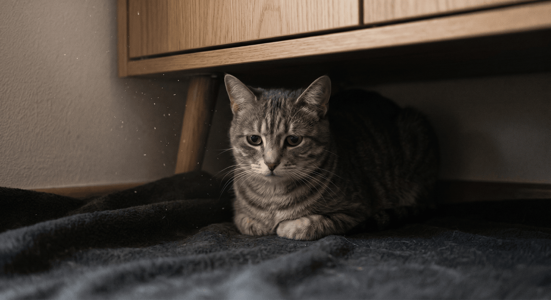 แมวที่ป่วยจะมีพฤติกรรมที่เรียกว่า Hiding Behavior คือการไปแอบในที่มืดๆ ใต้ตู้ หรือในซอกที่ปกติเขาไม่ไปนอน หากคุณเรียกแล้วน้องไม่ขยับ ไม่หันมามอง หรือมีอาการเซตอนเดิน (Ataxia) นั่นแปลว่าน้องอ่อนแรงมาก